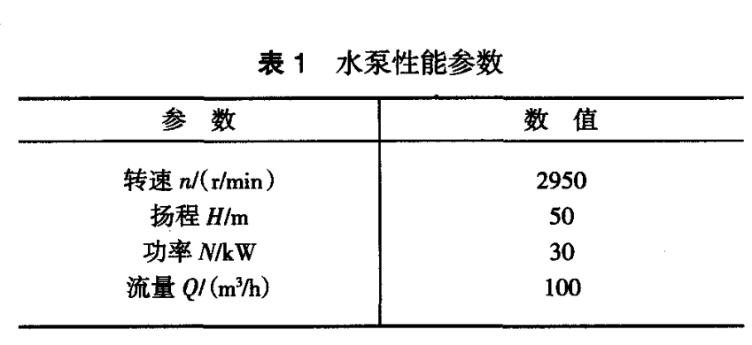 搭建水泵振動試驗(yàn)臺,試驗(yàn)臺整體如圖所示 (圖刪略-編者),試驗(yàn)臺水泵性能參數(shù)如表1所 示。該水栗軸系自振頻率: