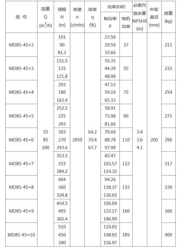 MD型礦用多級(jí)泵,是我廠在D型煤礦用多級(jí)清水離心泵的基礎(chǔ)上,改進(jìn)設(shè)計(jì)的一種耐磨多級(jí)離心泵。采用了國(guó)家推薦的高效節(jié)能產(chǎn)品的水力模型,具有效率高、性能范圍光、運(yùn)轉(zhuǎn)安全平穩(wěn)、噪音低、壽命長(zhǎng)、安裝維修方便等優(yōu)點(diǎn)。