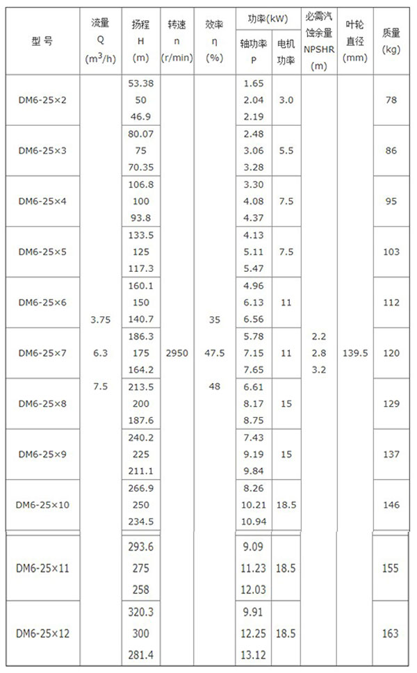 DM型多級(jí)離心泵具有揚(yáng)程高、功率小、效率高、性能范圍廣、運(yùn)轉(zhuǎn)安全和平穩(wěn)、噪音低、壽命長(zhǎng)、安裝維修方便等優(yōu)點(diǎn)??晒┹斔筒缓腆w顆粒(磨料),不含懸浮物的清水或物理化學(xué)性質(zhì)類似于清水的其它液體之用,也可通過(guò)改變泵的材質(zhì)(或泵過(guò)流部分的材質(zhì)),密封形式和增加冷卻系統(tǒng)用于輸送熱水、油類、腐蝕性或含磨料的介質(zhì)等。該系列泵系節(jié)段式多級(jí)離心泵,采用了國(guó)家推薦使用的高效節(jié)能水力模型,具有高效節(jié)能、性能范圍廣、運(yùn)行安全平穩(wěn)、低噪音、長(zhǎng)壽命、安裝維修方便等優(yōu)點(diǎn);通過(guò)改變泵的材質(zhì)(或泵過(guò)流部分的材質(zhì))、密封形式和增加冷卻系統(tǒng),可輸送熱水、油類、腐蝕性和含磨料的介質(zhì)等。
